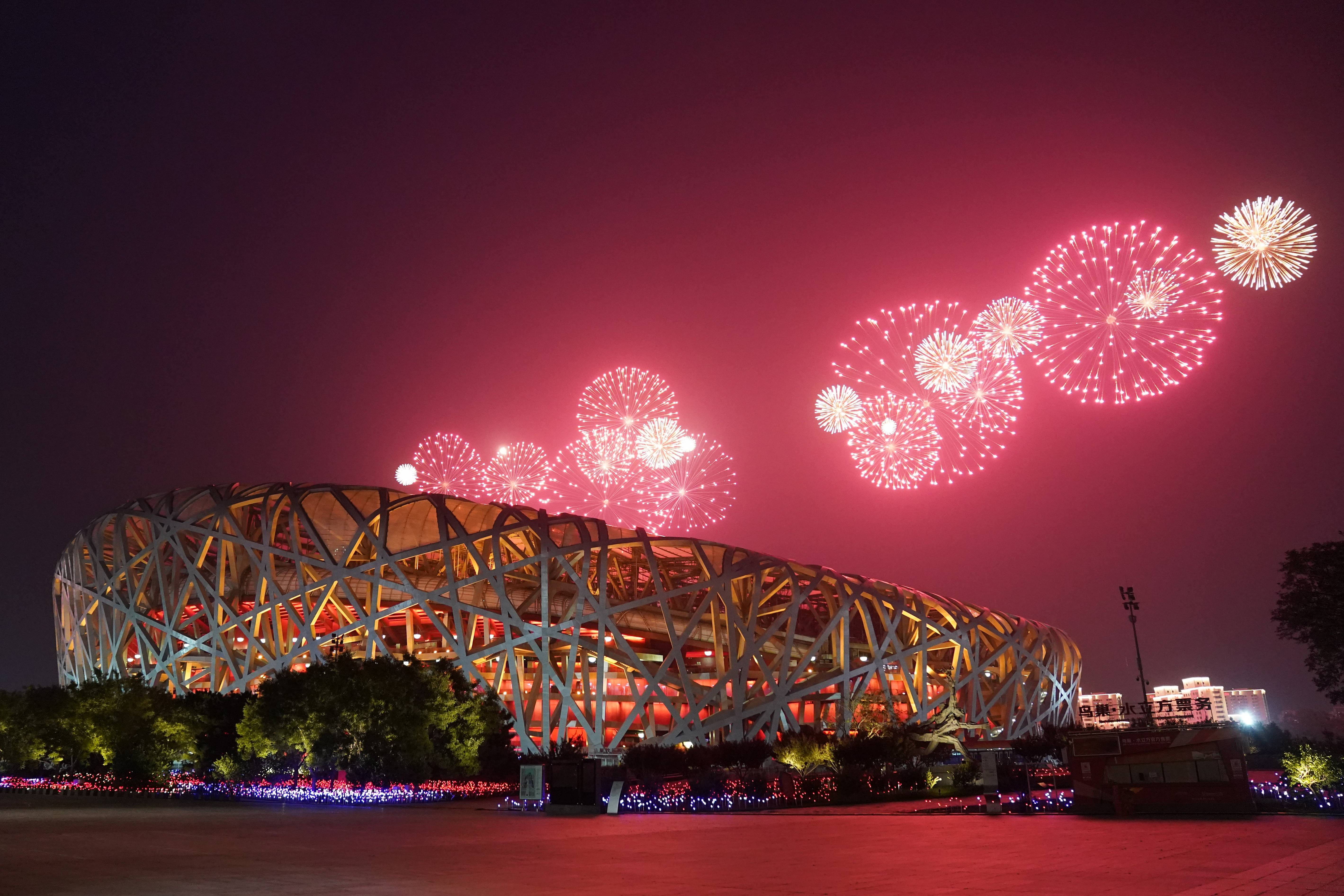 6月28日晚,庆祝中国共产党成立100周年文艺演出《伟大征程》在国家体育场盛大举行。这是焰火盛放在国家体育场上空。新华社记者 彭子洋 摄
